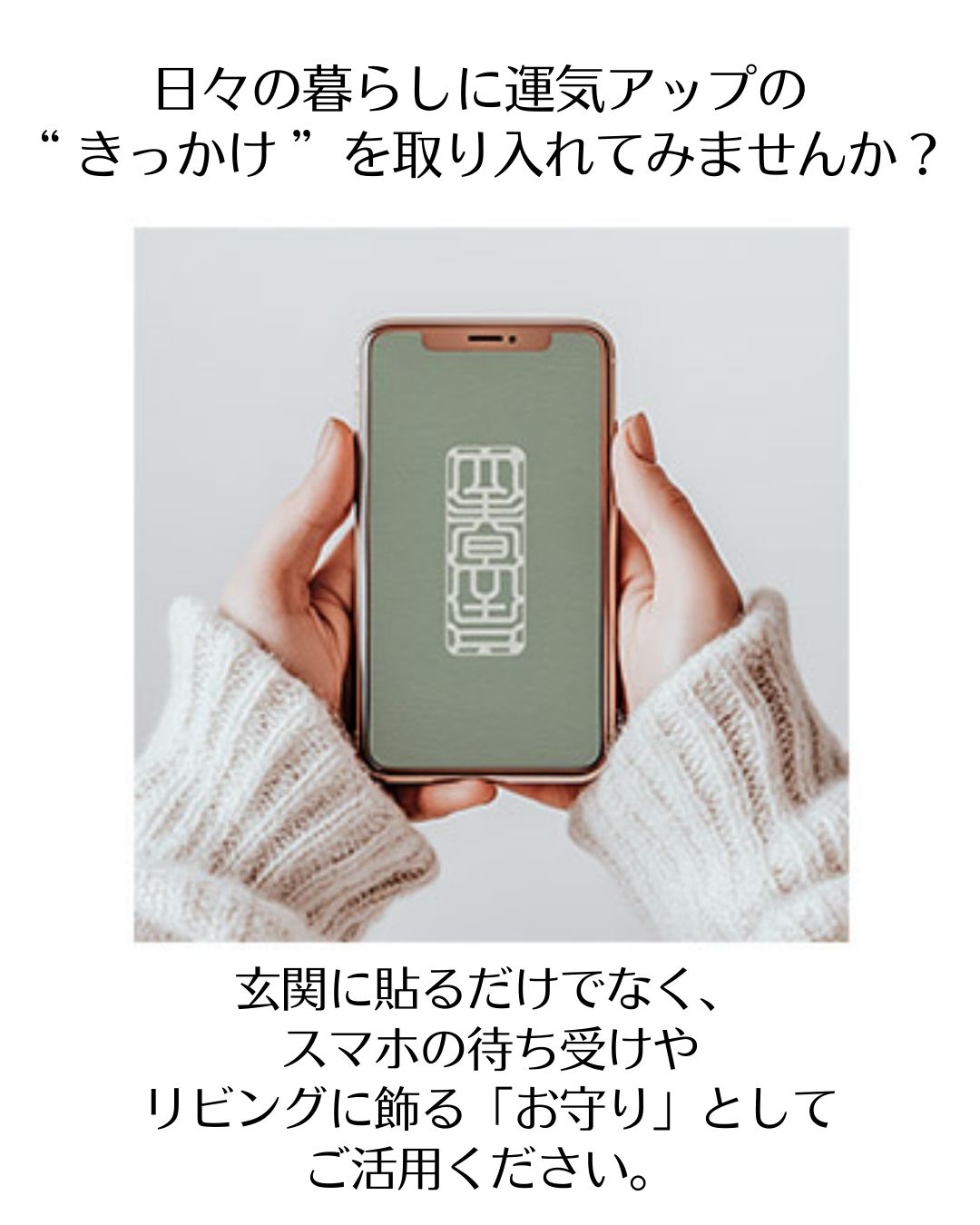 スマホの待ち受けにしたり、印刷してお札として貼り付けておきましょう。(玄関や守ってほしい部屋の入口の高い場所に掲げます。)