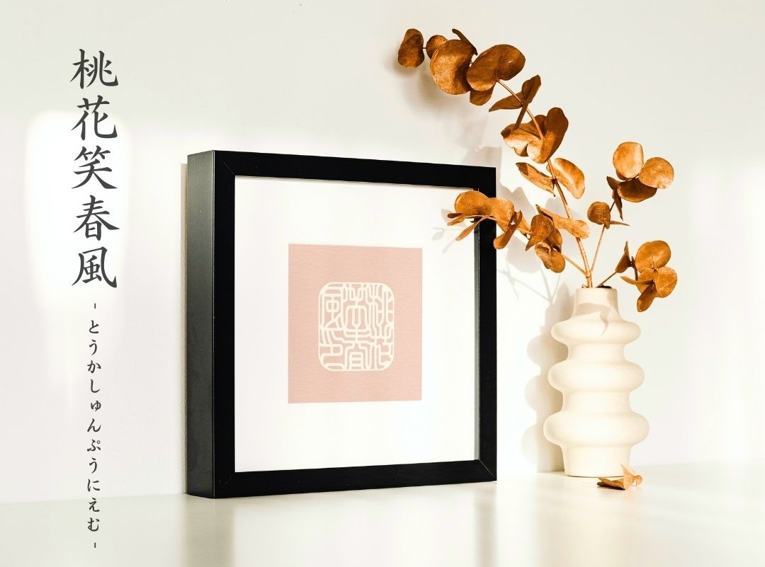 縁起の良い開運書体で、無病息災と守護厄除け、そして良縁祈願の運気を高めた「桃花笑春風」の【開運のしるし】。