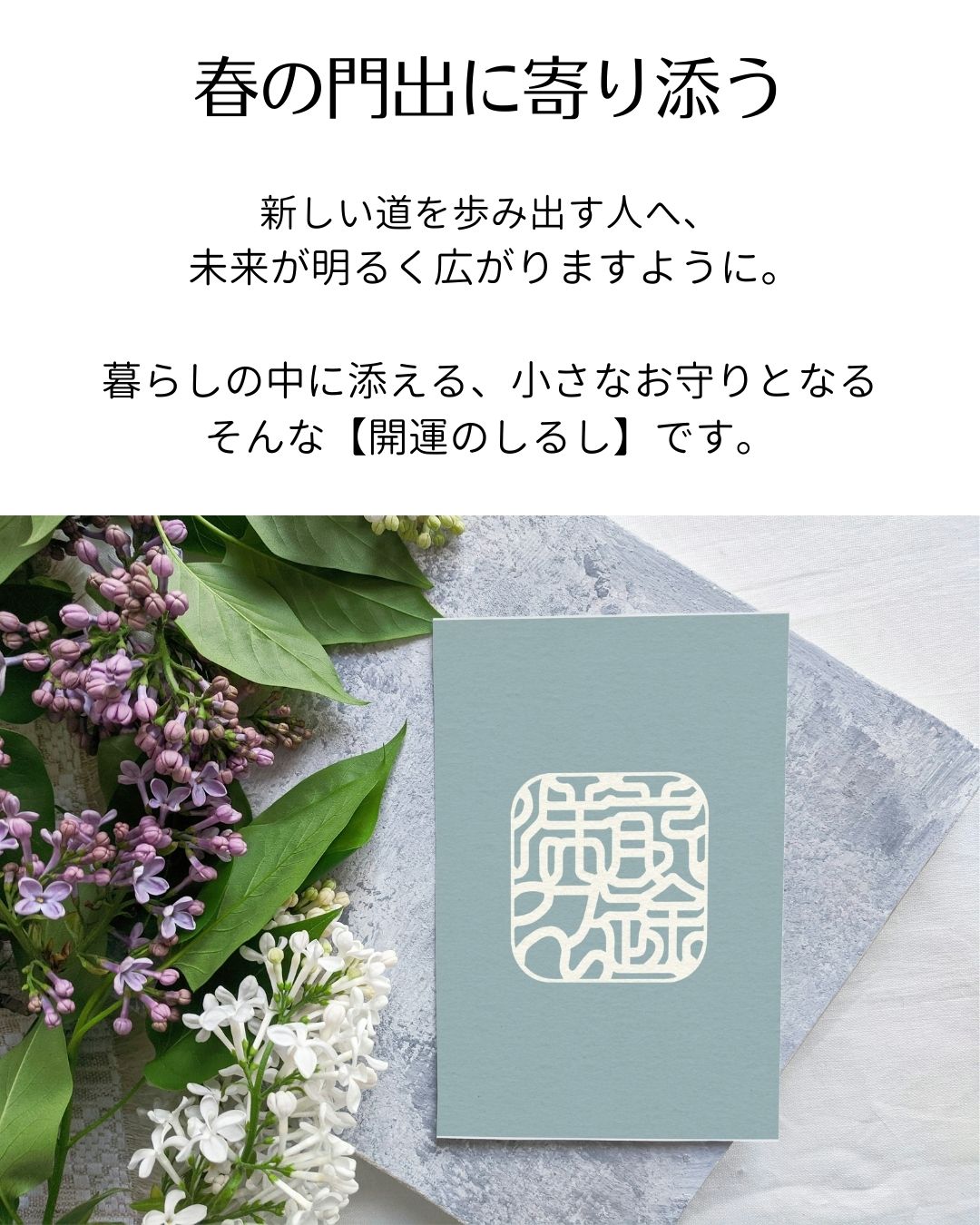 新しい道を歩み出す人へ、未来が明るく広がりますように。そんな祈りを、縁起の良い開運書体に込めました。